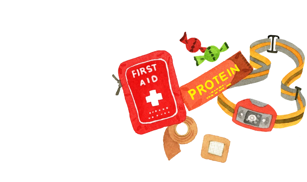 - ・通常の登山やハイキングに必要となる持ち物・装備を、天候や季節に応じて準備することが大切です。